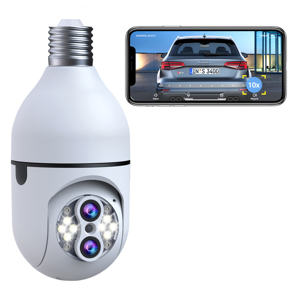 【Motion tracking and instant alerts】Once motion is detected, the wireless bulb camera wifi will automatically track and record moving objects while triggering audible and visual alerts (can be turned off) to scare thieves and push real-time alerts to your phone.