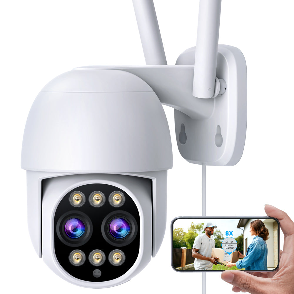【8X Hybrid Zoom & Dual Lens Design】This home surveillance camera adopts a dual lens design (12mm + 2.8mm) to expand the surveillance range of the camera. The 8x hybrid zoom can achieve a 1-8x change in the focal length of the medium lens in the same frame, and adjust the appropriate focal length according to the needs of the shooting scene, allowing you to capture distant details more easily.