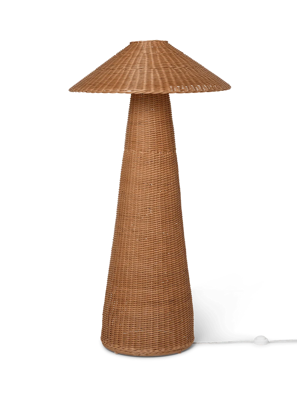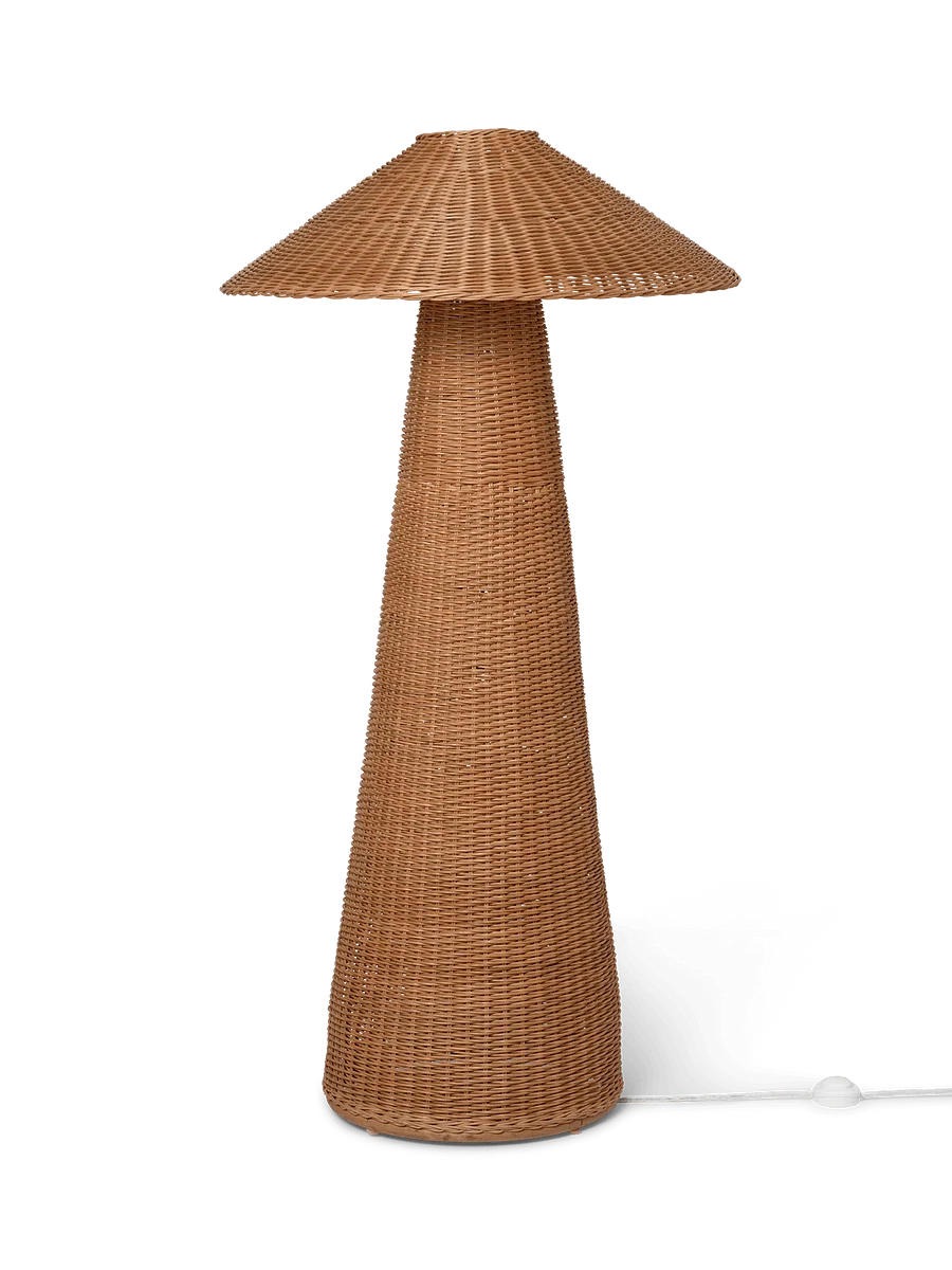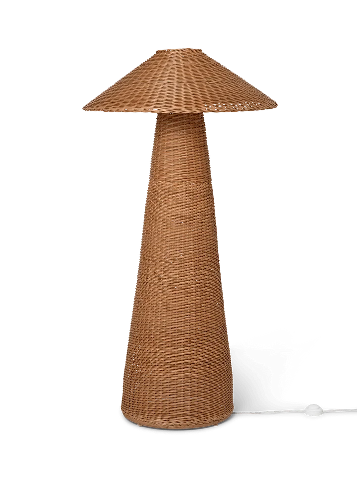 Hand-braided from natural rattan, our Dou series celebrates the lovely contrast between geometric shapes and the organic, textural qualities of the material. This floor lamp features oversized dimensions and a soft, comfortable light, while the shade allows for small glimpses of illumination through the braided rattan, and will add texture and tactility to your living space.