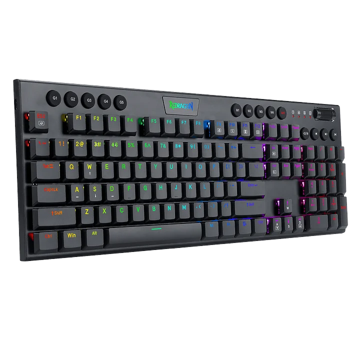 Redragon K619 Horus RGB Mechanical Keyboard, Ultra-Thin Designed Wired Gaming Keyboard w/Low Profile Keycaps, Dedicated Media Control & Linear Red Switch, Pro Software Supported