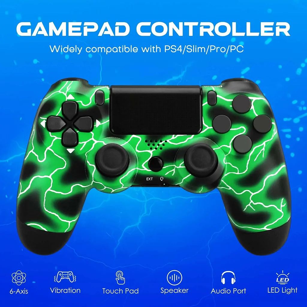 Wireless Controller for PS4, Remote Gamepad Compatible with PlayStation 4/PS4 Slim/PS4 Pro/Windows PC, Green Lighting