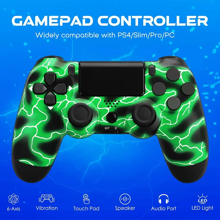 • Wireless controller for PS4 with 6-Axis Gyroscope&Dual Vibration &Clickable Touch Pad : The highly sensitive 6-Axis gyroscope supports direction control, shooting aim and character input; the dual vibration gives you the authentic attack and shooting experiences and the clickable touch pad supports click and touch functions to meet your needs.